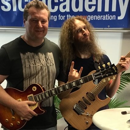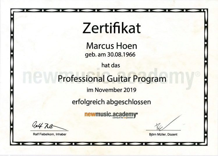 ...in frühen Kinderjahren war das Klavier Einstiegsinstrument und später die Trompete, bis nach einer musikalischen Pause von mehr als 30 Jahren der Herzenswunsch nach der E-Gitarre endlich Realität wurde und ich mich "traute" etwas völlig Neues zu beginnen. An der newmusic.academy in Wiesbaden erfolgte dann nach ersten Gitarrenunterrichtsstunden in einem zweijährigen Präsenzkurs der vorläufige Abschluss, um zu erkennen, dass es dann erst richtig los geht....und es noch vieles zu lernen und entdecken gibt. Dabei bin ich bei den harten Klängen des Rock und Metal bislang "hängengeblieben".